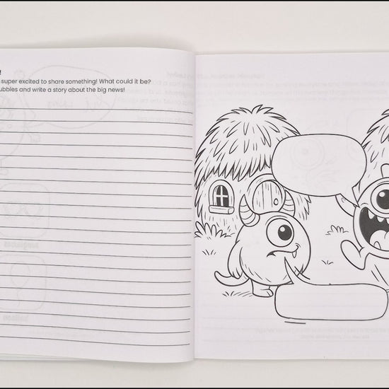Whether they’re writing about superhero monsters, or monster treasure hunts, this creative writing workbook for kids sparks laughter, storytelling, and screen-free fun. Perfect for imaginative kids and grown-ups who want to support storytelling in a playful way.