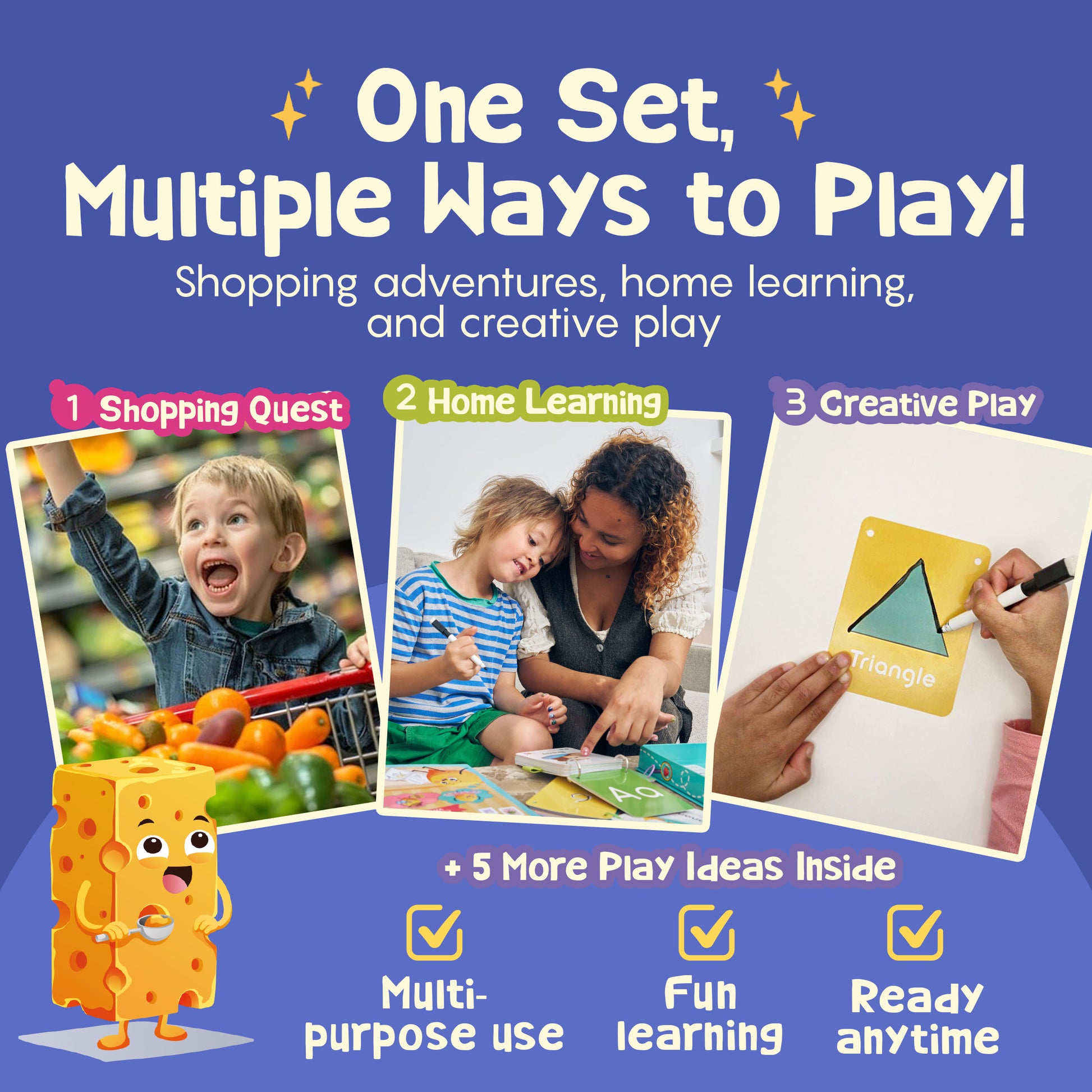 Use them in the supermarket, for home learning, in the car, or pretend play.