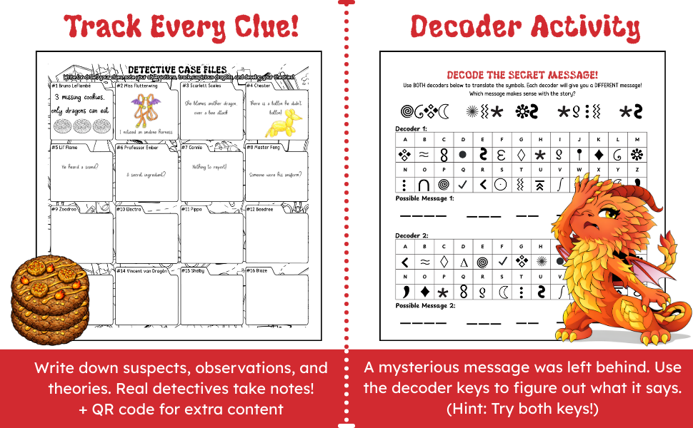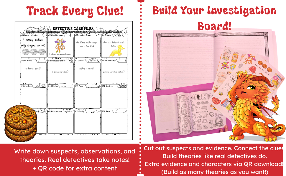 Kids can enjoy this dragon coloring book purely for coloring — or dive deeper into the optional detective mystery hidden throughout the pages.